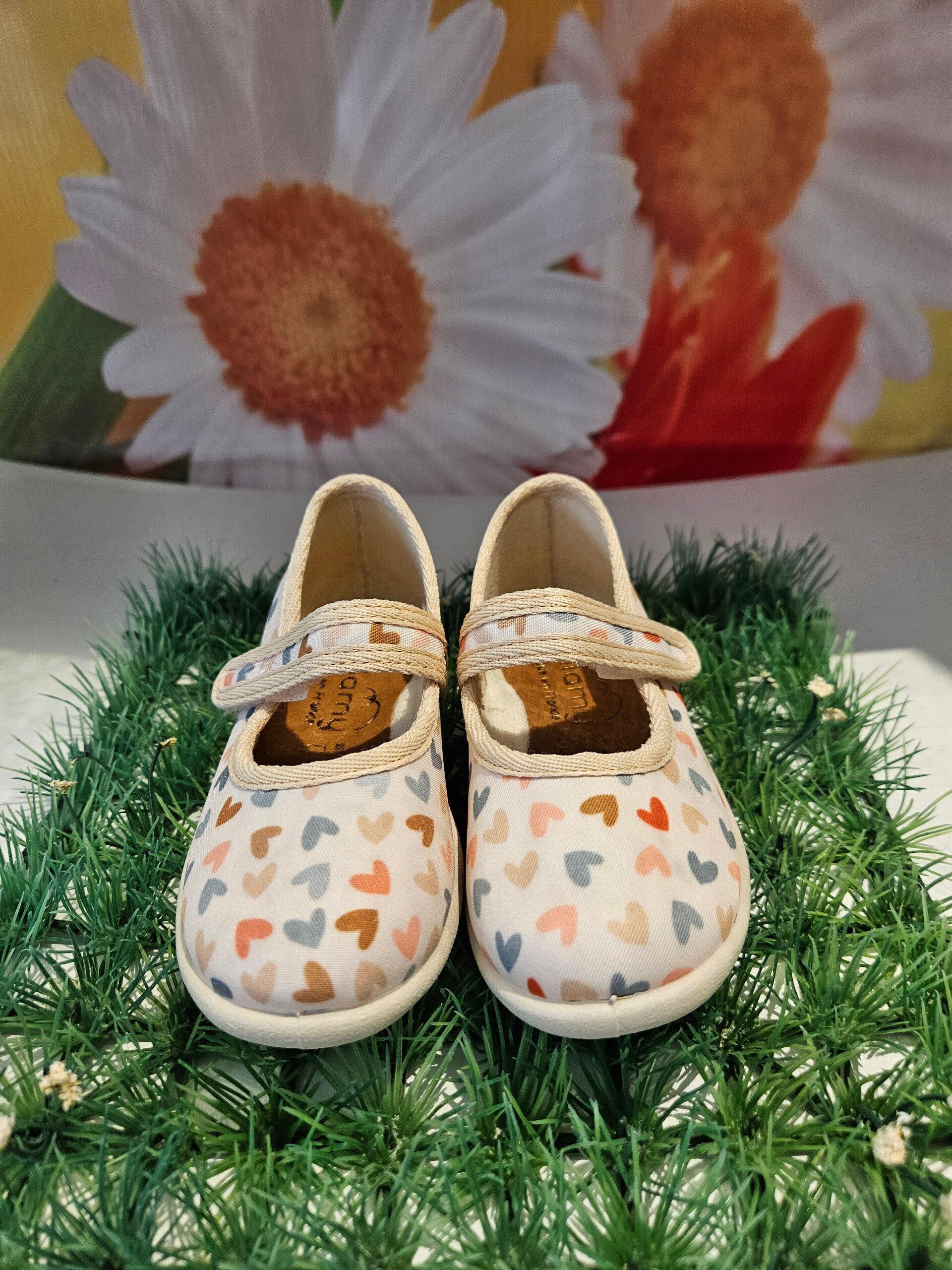Pantoffel zomerballerina model Paris met hartjes.